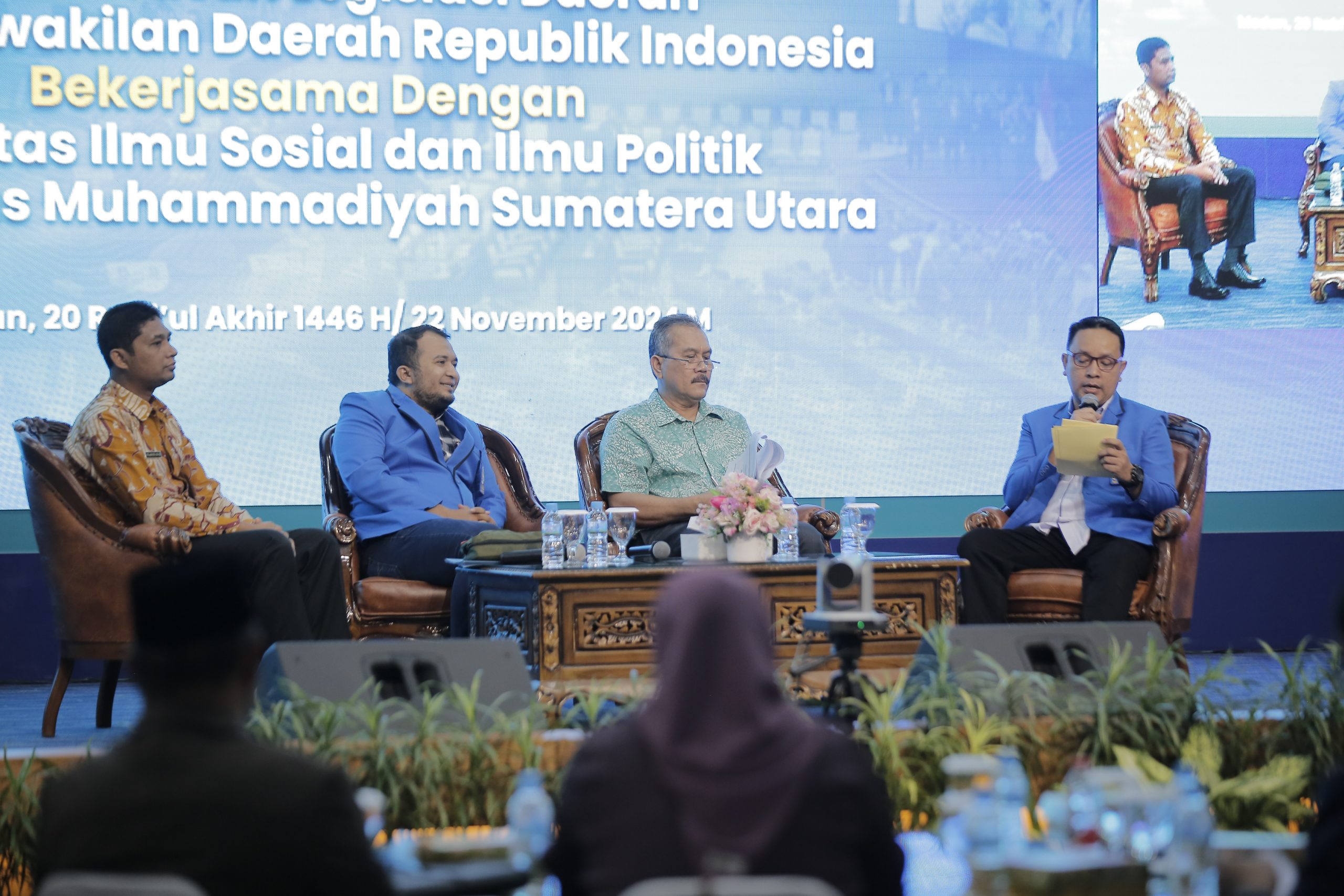 Sebanyak 14 Anggota Dewan Perwakilan Daerah Republik Indonesia (DPD RI) yang ada di Badan Urusan Legislasi Daerah (BULD) bersama para dosen Fakultas Ilmu Sosial dan Ilmu Politik Universitas Muhammadiyah Sumatera Utara (FISIP UMSU) dan utusan lembaga lainnya membahas tata kelola pemerintah desa. Kegiatan yang bertema “Temu Konsultasi Legislasi Pusat-Daerah dalam Rangka Pemantauan Rancangan Peraturan Daerah dan Peraturan Daerah terkait Tata Kelola Pemerintahan Desa ke Provinsi Sumatera Utara,” dilaksanakan di Auditorium UMSU, kampus Jalan Mukhtar Basri, Medan, Jumat (22/11).