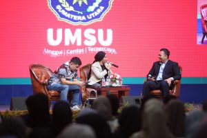 Universitas Muhammadiyah Sumatera Utara (UMSU) dan Telkomsel kolaborasi gelar acara bertajuk ‘Youtube Kampus Day’ menghadirkan narasumber Country Head Youtube Indonesia, Suwandi Widjaja dan Manager Youth Community and Lifestyle GTM Telkomsel Area Sumatera, Ika Purnama Dewi di Auditorium UMSU Jalan Muchtar Basri No.3 Medan, pada Kamis (30/5).