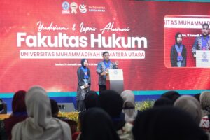 Sementara itu, Muhammad Najih, S.H., M.Hum., Ph.D., Ketua Ombudsman Republik Indonesia, turut memberi pesan, “Semoga para alumni baru Fakultas Hukum UMSU menjadi sarjana hukum yang berkarakter.”
