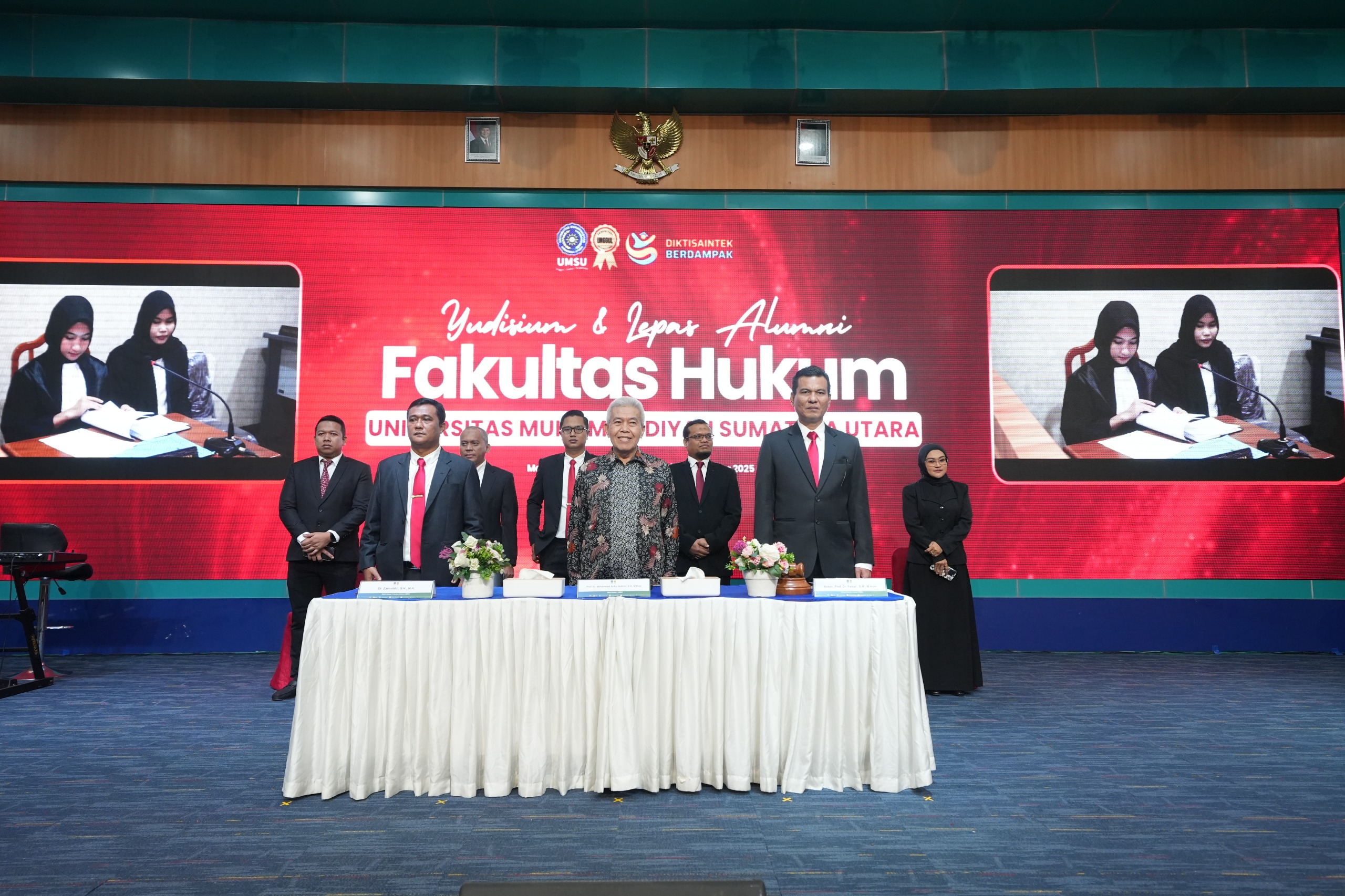 Acara yudisium ditutup dengan doa dan sesi foto bersama pimpinan universitas, dosen, serta para lulusan, menandai awal perjalanan para sarjana hukum muda UMSU menuju dunia profesional dan pengabdian masyarakat.