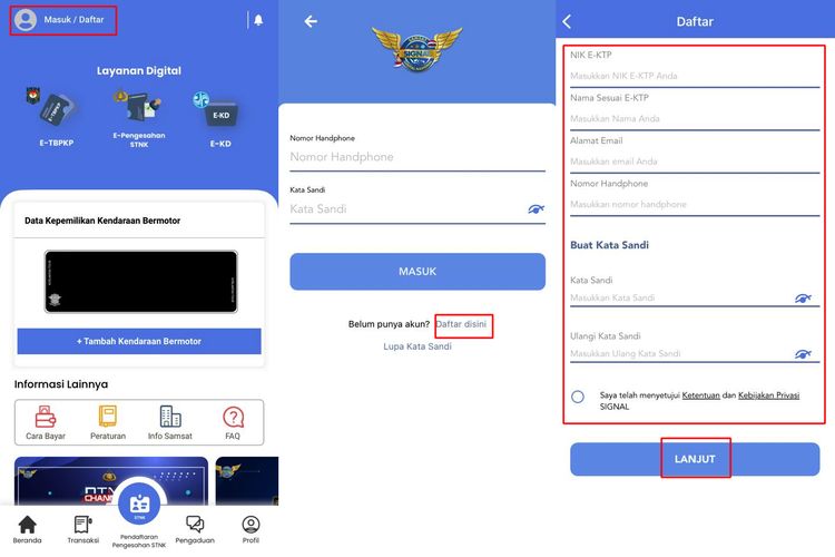 Melalui aplikasi ini, pemilik kendaraan dapat melakukan registrasi, mengunggah data kendaraan, melakukan pembayaran pajak, hingga menerima dokumen pengesahan STNK secara elektronik dengan cepat dan aman.
