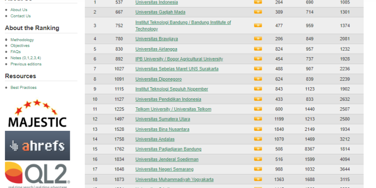 Berikut adalah rangkuman peringkat 70 besar Webometrics 2024 di Indonesia: