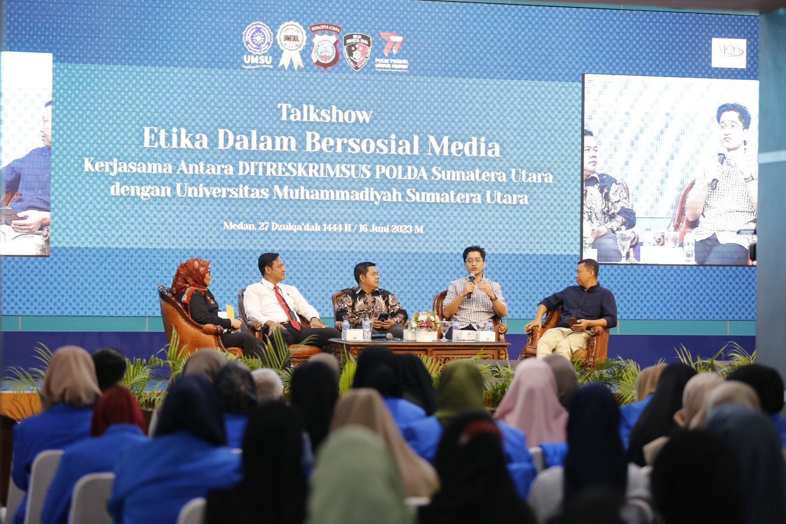 Direktorat Reserse Kriminal Khusus Kepolisian Daerah Sumatera Utara, bersama Universitas Muhammadiyah Sumatera Utara (UMSU) menggelar talkshow bertajuk, “Etika dalam Bermediasosial di auditorium Kampus, di Jalan Kapten Mukhtar Basri, Medan, Jumat (16/6).