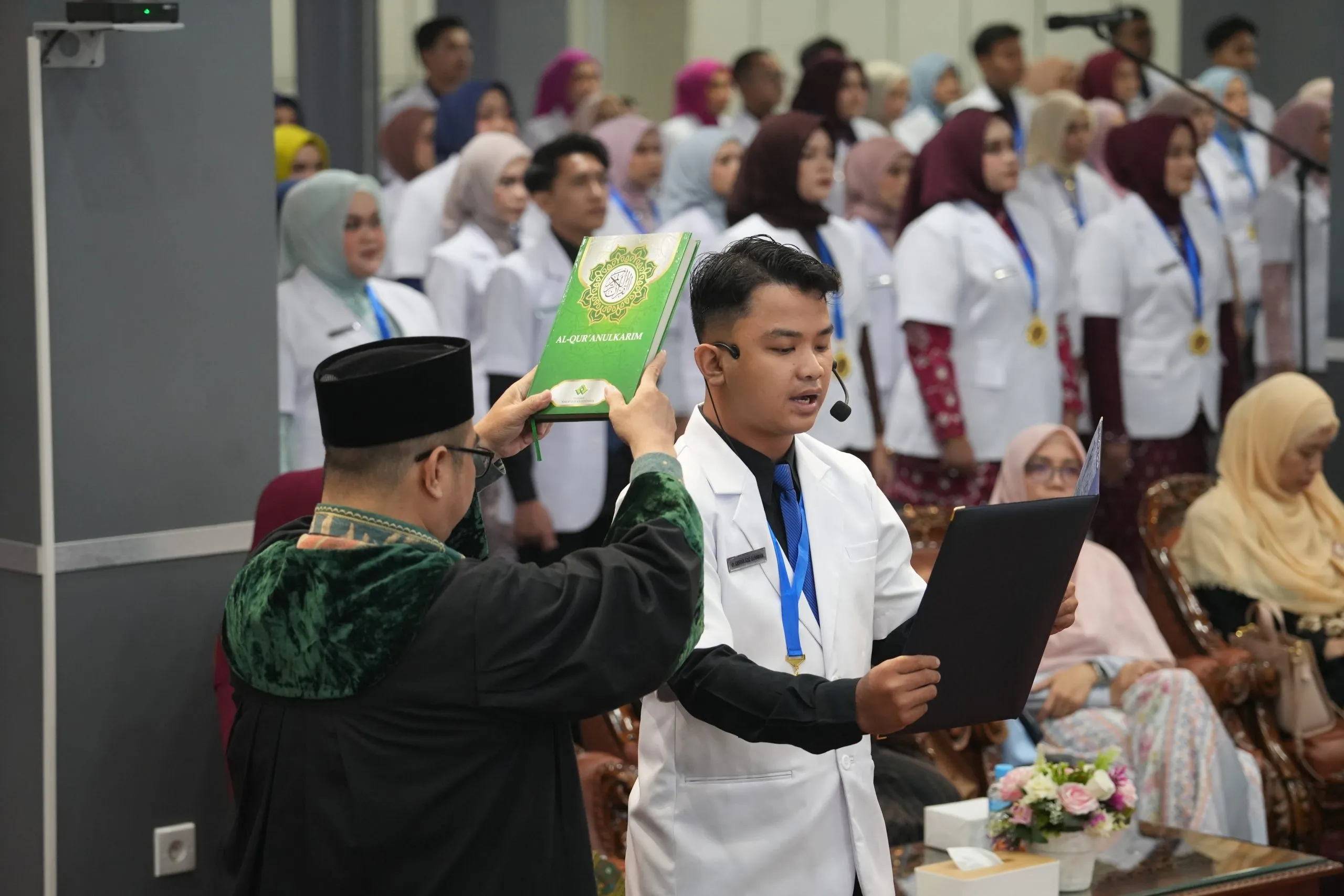 The Faculty of Medicine at the University of Muhammadiyah Sumatera Utara (FK UMSU) held its 41st Yudisium and physician oath-taking ceremony, celebrating the graduation of 76 students from the Doctor Profession Program. The solemn event was led by UMSU Rector, Prof. Dr. Agussani, MAP, on Friday (April 25) at the UMSU Auditorium, Jalan Muchtar Basri No. 3, Medan.