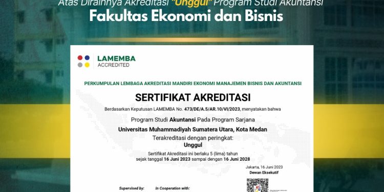 The Accounting Study Program at the Faculty of Economics and Business, Universitas Muhammadiyah Sumatera Utara (FEB UMSU), has successfully achieved excellent accreditation from the Independent Accreditation Agency for Economics, Business Management, and Accounting (LAMEMBA).