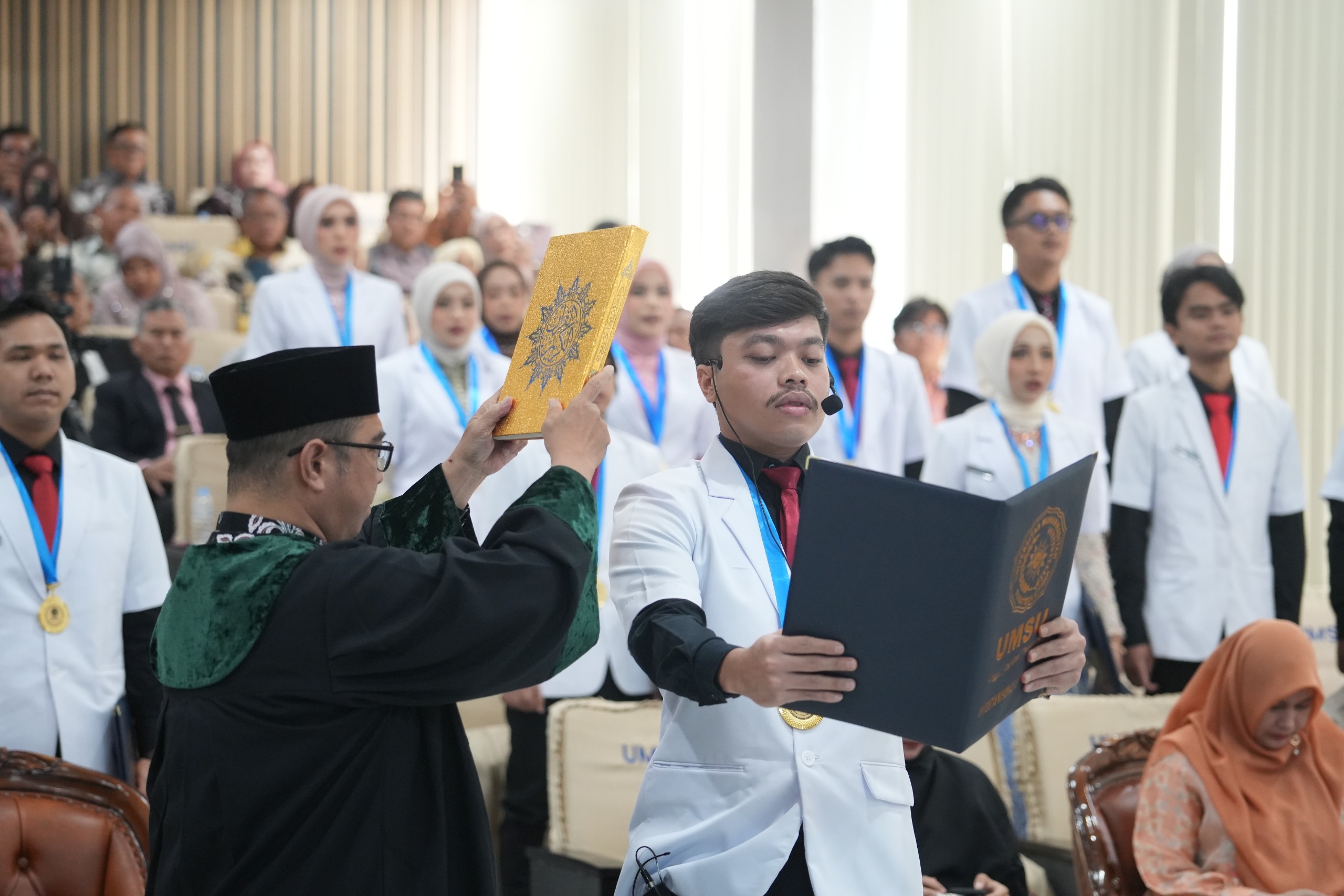 The Faculty of Medicine and Health Sciences (FKIK) of Universitas Muhammadiyah Sumatera Utara (UMSU) held a Graduation Confirmation and Doctor’s Oath Ceremony for the 64th cohort, attended by 32 graduates of the Medical Profession Program. The event took place at the FKIK UMSU Auditorium, Jalan Gedung Arca No. 53, Teladan Barat, Medan Kota District, on Wednesday (January 21).