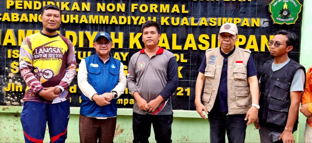 In addition to visiting the disaster response post, the Minister also inspected several schools in Aceh Tamiang, including Muhammadiyah Junior High School (SMP Muhammadiyah) Kuala Simpang, where he donated IDR 25 million. On this occasion, he once again delivered a special message to the UMSU Rector to help support the recovery of school activities.