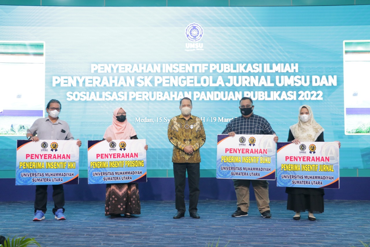 Universitas Muhammadiyah Sumatra Utara (UMSU) handed over an incentive for scientific publications in 2021 worth Rp. 3.7 billion as a form of appreciation encourages lecturers to implement the tri dharma of higher education.