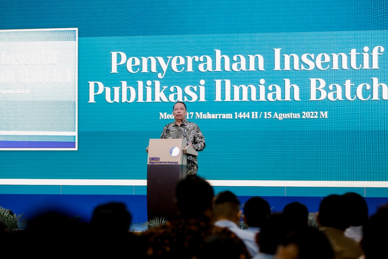 The Muhammadiyah University of North Sumatra handed over funds of Rp. 1.1 billion for Batch I in 2022 as an incentive for lecturers’ scientific works published in national indexed journals and Scopus.