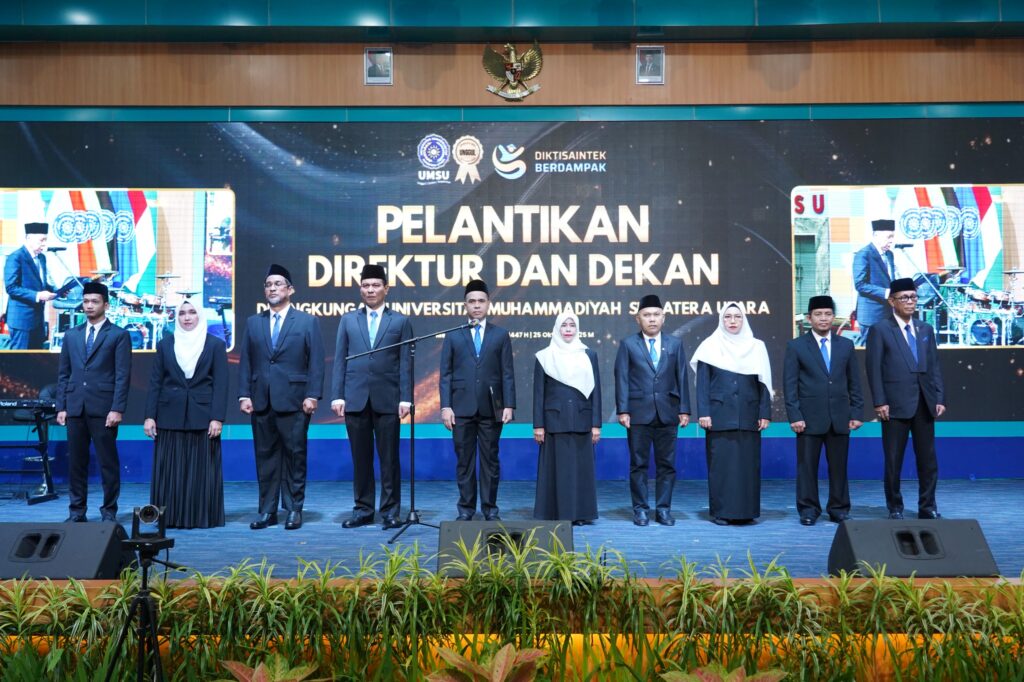 The inauguration was attended by the UMSU Board of Trustees Chairman Dr. Bahril Datuk, S.E., M.M., representatives from Muhammadiyah organizations, regional leaders, healthcare partners, university rectors, public officials, and families of the newly appointed deans and directors.
