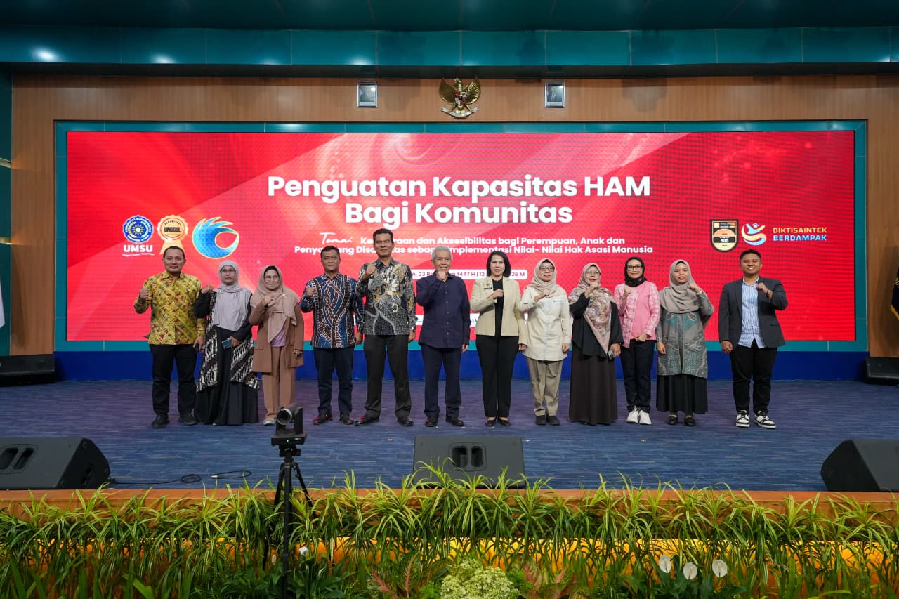 Fakultas Hukum Universitas Muhammadiyah Sumatera Utara (UMSU) dan Kantor Wilayah Kementerian Hak Asasi Manusia (Kemenham) Sumatera Utara menggelar kegiatan Penguatan Kapasitas Hak Asasi Manusia bagi Komunitas dengan tema “Kesetaraan dan Aksesibilitas bagi Perempuan, Anak dan Penyandang Disabilitas sebagai Implementasi Nilai-Nilai Hal Asasi Manusia” di Auditorium Kampus, pada Kamis (12/3).
