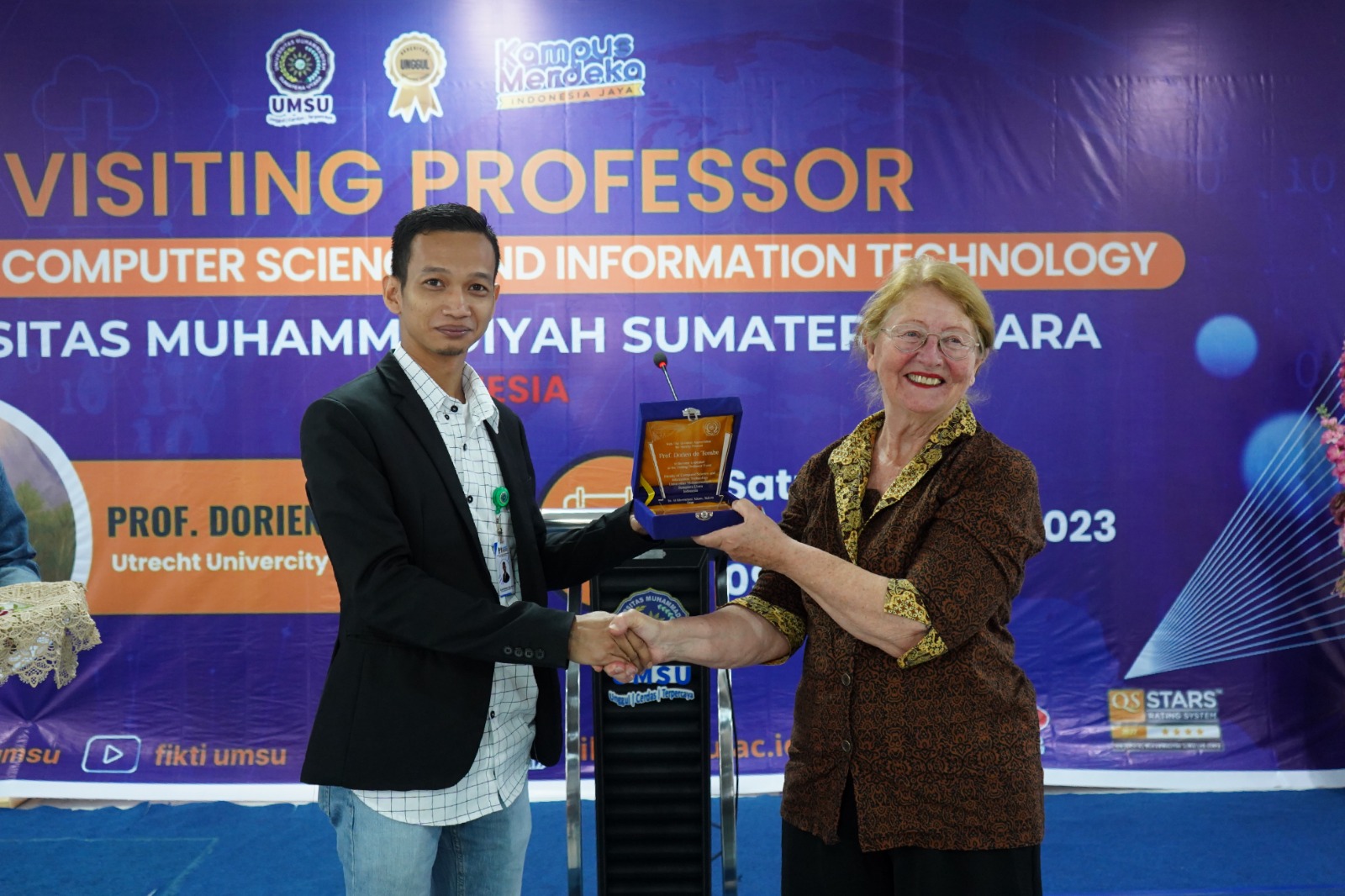 Hadir pada kegiatan ini Dekan FIKTI UMSU Dr. Al-Khowarizmi S. Kom., M. Kom, Wakil Dekan I Halim Maulana S. T., M. Kom, Prof. Dorien De Tombe, Dosen dan Mahasiswa FIKTI UMSU.