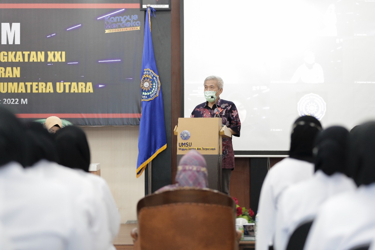 “Hari ini, kita membangun peradaban baru, dokter-bokter muda yang akan kita letakan dan selanjutnya akan kita berikan ke masyarakat sebagai mahasiswa unggulan lahir dari UMSU. Ingat hampir dua tahun nanti ananda sekalian berjuang di rumah-rumah sakit pendidikan, tentu bukanlah hal yang mudah, maka ananda harus bisa berkomunikasi dan konsultasi sehingga tidak ada hambatan,” ujar dr. Hanip.