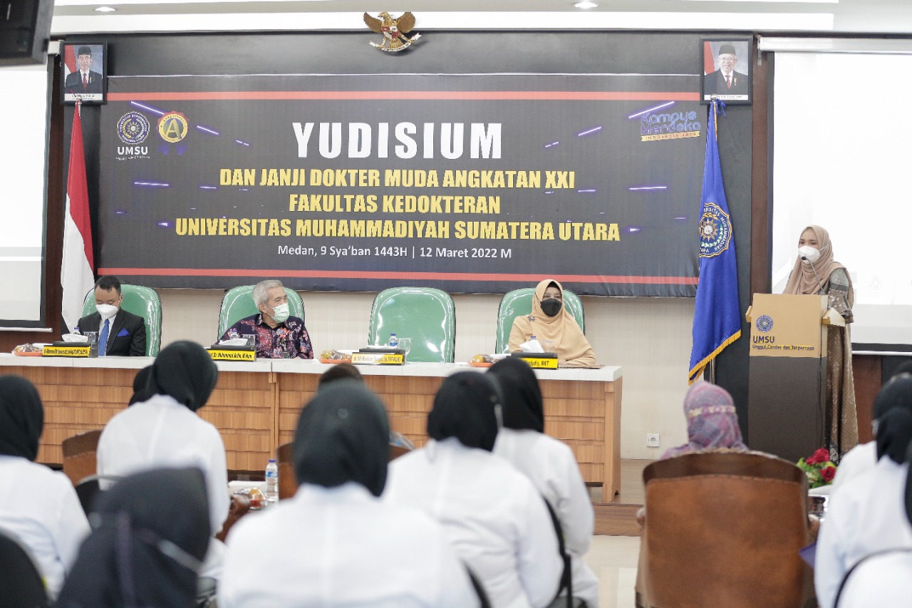 Fakultas Kedokteran Universitas Muhammadiyah Sumatera Utara (FK UMSU) menggelar prosesi yudisium dan janji dokter muda program studi pendidikan kedokteran angkatan ke-21. Prosesi ini dilaksanakan secara langsung di Aula FK UMSU – Jl. Gedung Arca No.53, Kota Medan, Sabtu (12/3).