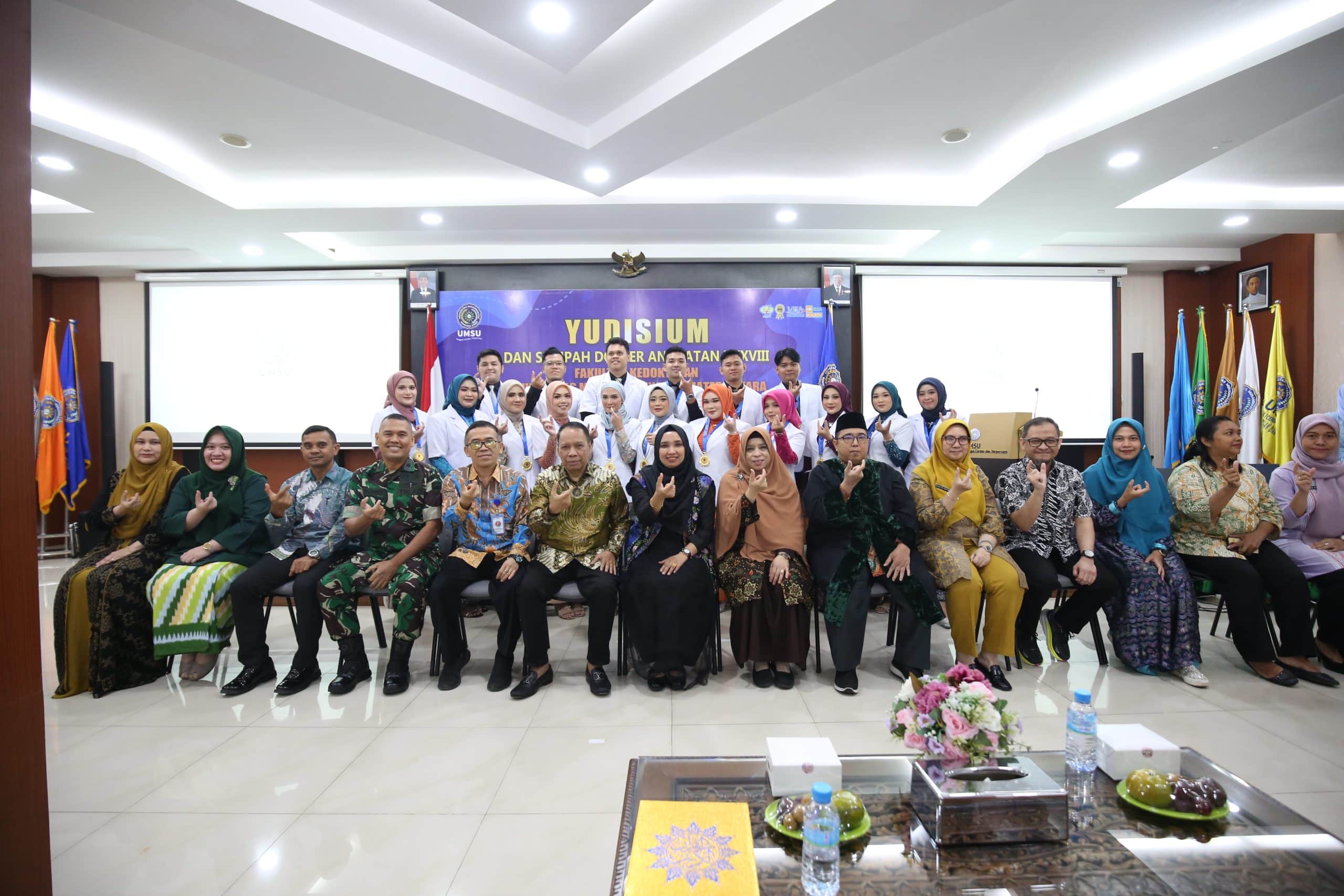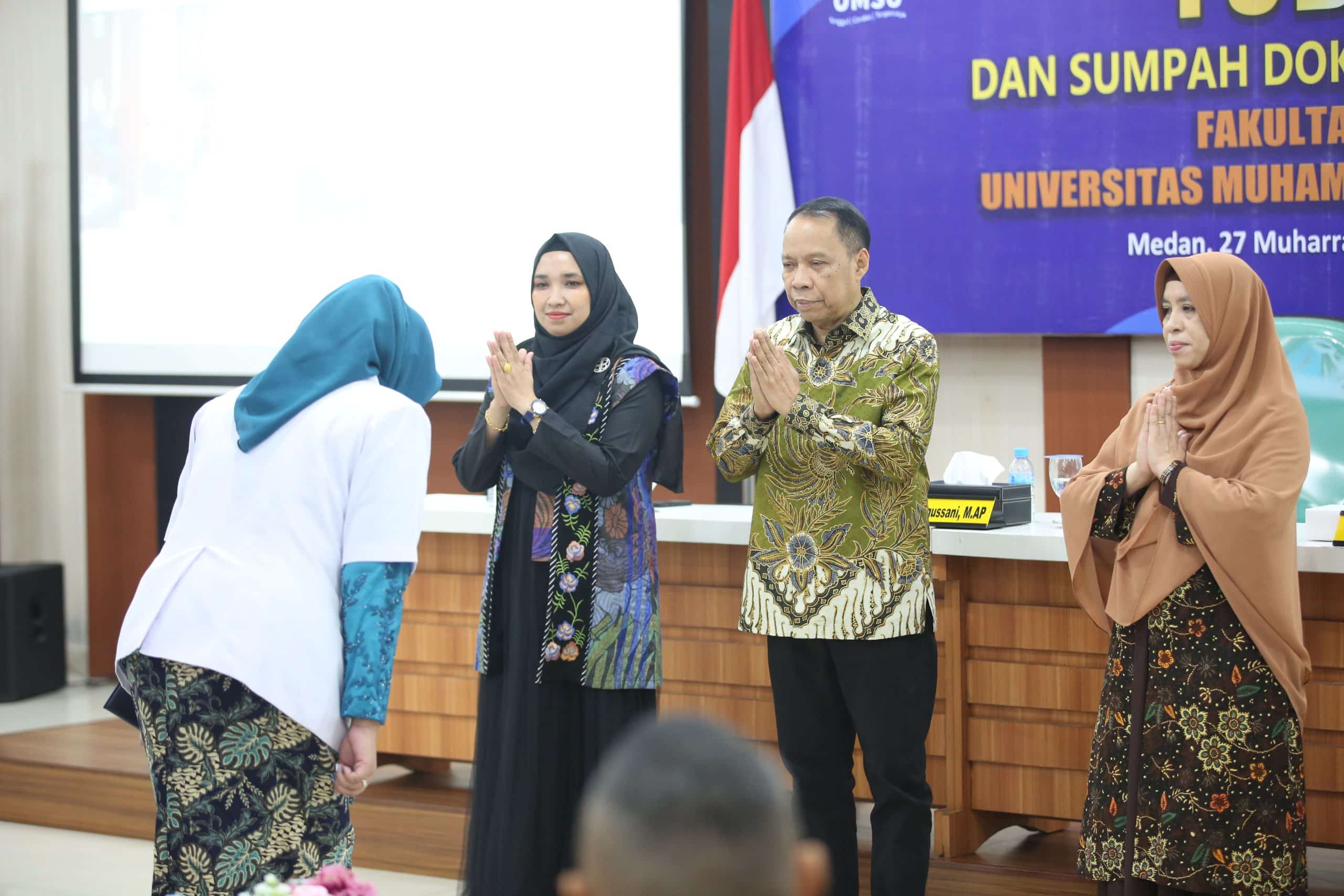 Fakultas Kedokteran Universitas Muhammadiyah Sumatera Utara (FK UMSU) menggelar yudisium dan sumpah dokter angkatan ke-38. Acara ini diikuti oleh 17 lulusan Profesi Dokter dan digelar pada Jumat (2/8) di Aula FK UMSU, Jalan Gedung Arca No. 53, Teladan, Kota Medan.