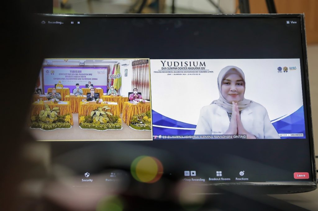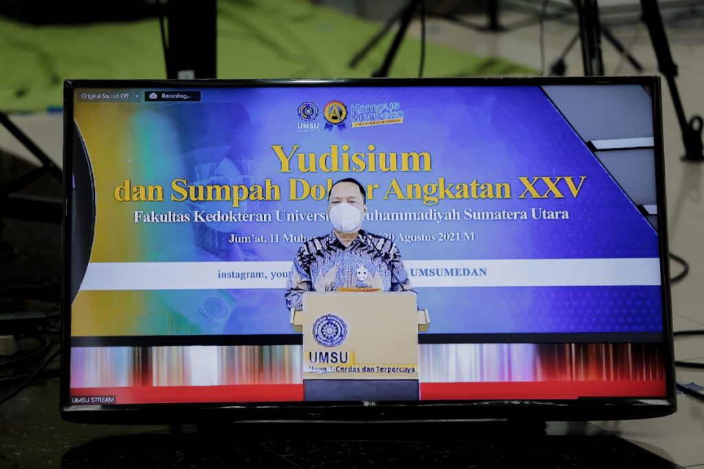 Fakultas Kedokteran Universitas Muhammadiyah Sumatera Utara (FK-UMSU) melakukan Yudisium dan Pengambilan Sumpah Dokter angkatan ke-XXV sebanyak 96 dokter. Yudisium yang berlangsung, Jumat (20/8) siang itu berlangsung secara hybrid dari Kampus Pascasarjana, Jalan Denai Medan.