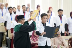 “Hari ini bukan hanya tentang sebuah seremoni, melainkan tentang sebuah awal perjalanan baru. Kami berdiri sebagai dokter yang akan mengabdikan diri kepada masyarakat, bangsa dan kemanusiaan,” katanya.
