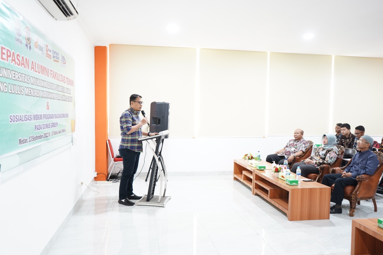 Fakultas Teknik UMSU menggelar pelepasan sembilan alumni menjadi karyawan di PT. Gunas Group, salah satu perusahaan perkebunan kelapa sawit terbesar di Indonesia. Pelepasan dilakukan langsung oleh rektor UMSU diwakili oleh Wakil Rektor 3 Dr. Rudianto M.Si di Gedung Fakultas Teknik, Kamis (13/10).