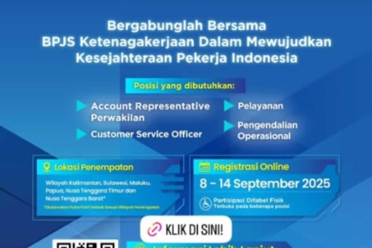 Selain itu, perekrutan kali ini juga membuka kesempatan untuk difabel fisik pada beberapa posisi, sehingga peluang karir menjadi lebih inklusif.