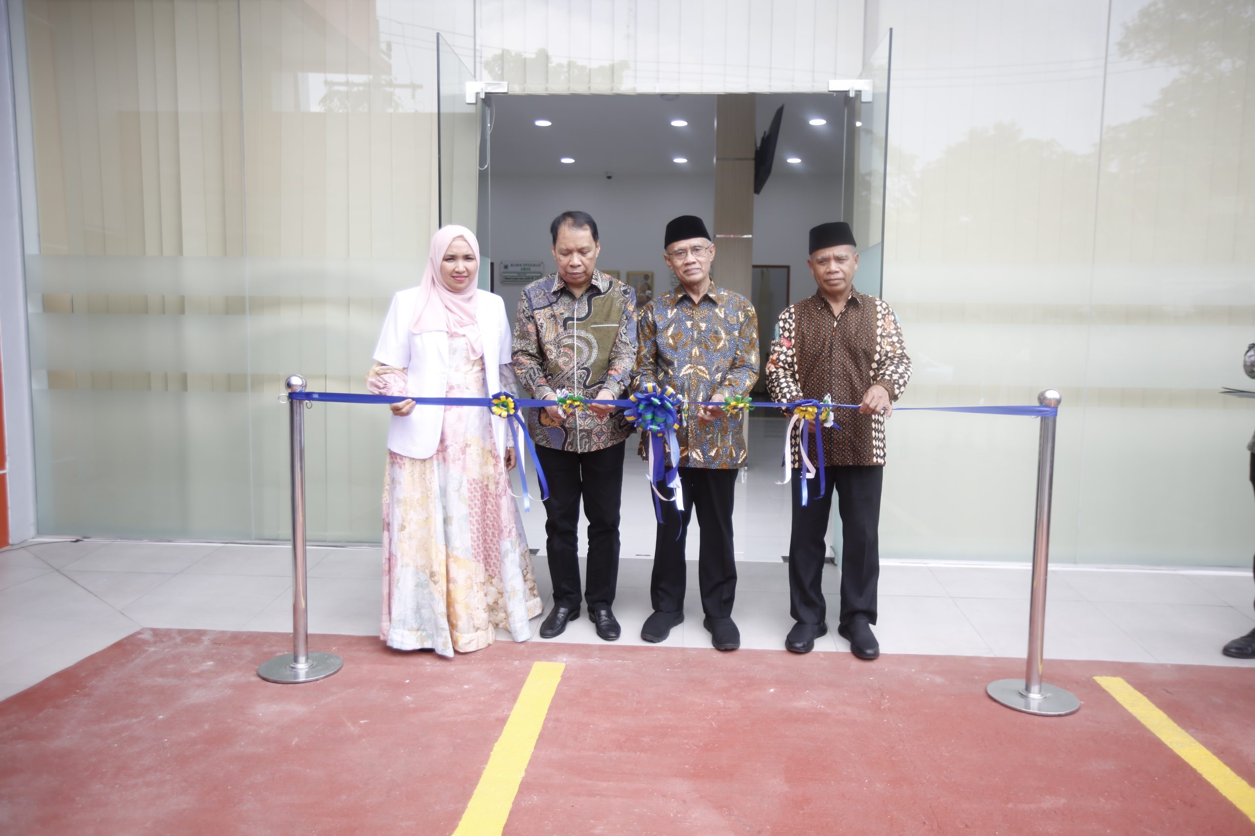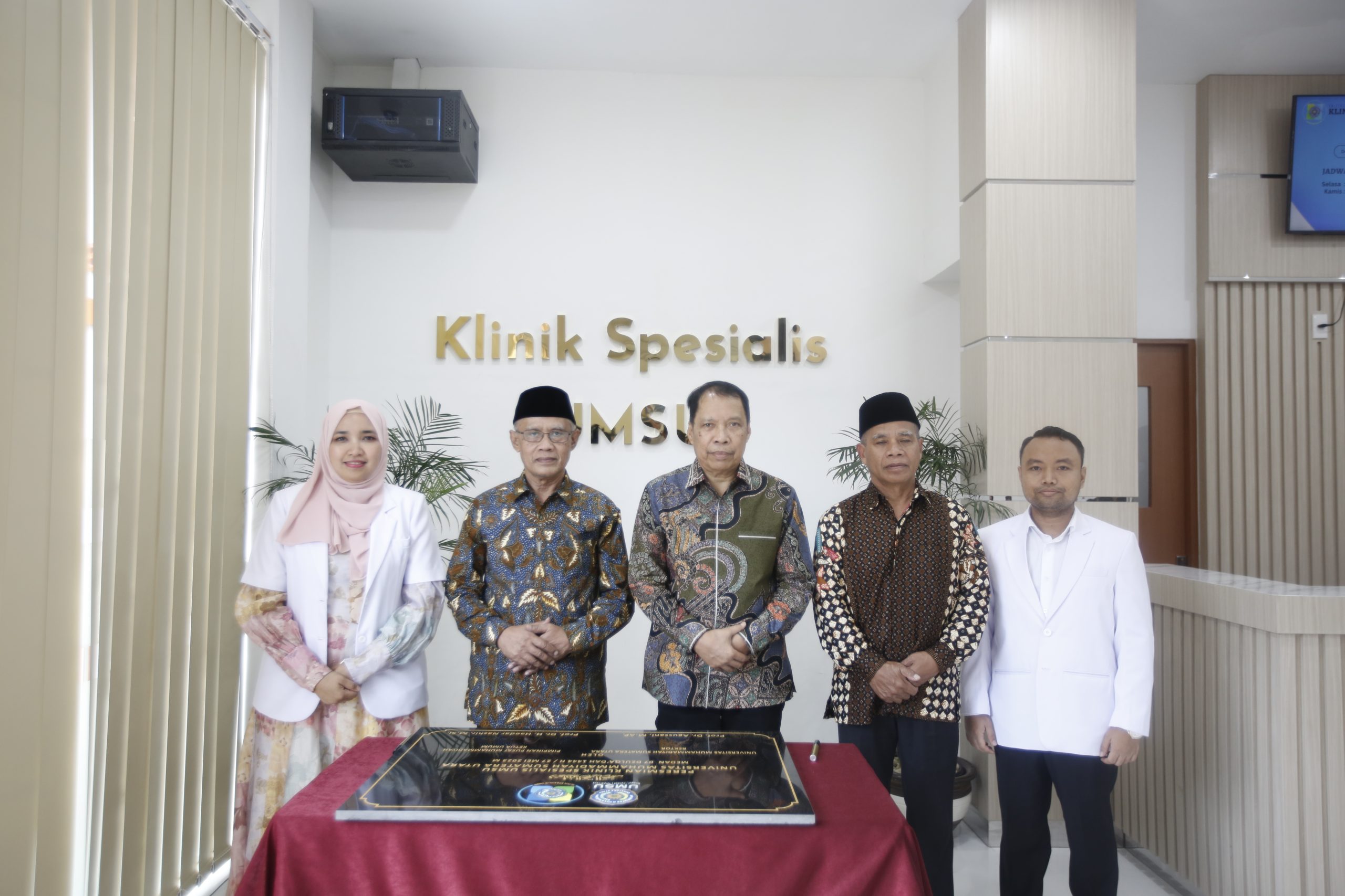Ketua Umum Pimpinan Pusat (PP) Muhammadiyah Prof. Dr. H. Haedar Nashir, M.Si. bersama Pimpinan Wilayah Muhammadiyah (PWM) Sumatera Utara Prof. Dr. H. Hasyimsyah Nasution, M.A didampingi Rektor UMSU Prof. Dr. Agussani, MAP dan Dekan FK UMSU Dr. Siti Masliana Siregar, Sp. THT-KL(K), memotong pita sebagai bentuk peresmian klinik spesialis, Sabtu (27/5) di Fakultas Kedokteran UMSU Jalan Gedung Arca No.53, Teladan, Kota Medan.