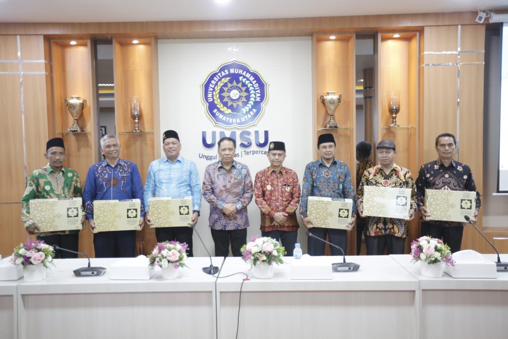 Pembagian diakhiri dengan penyerahan secara simbolis dari Rektor UMSU kepada masing-masing perwakilan PDM, PDA, PCM dan PCA.