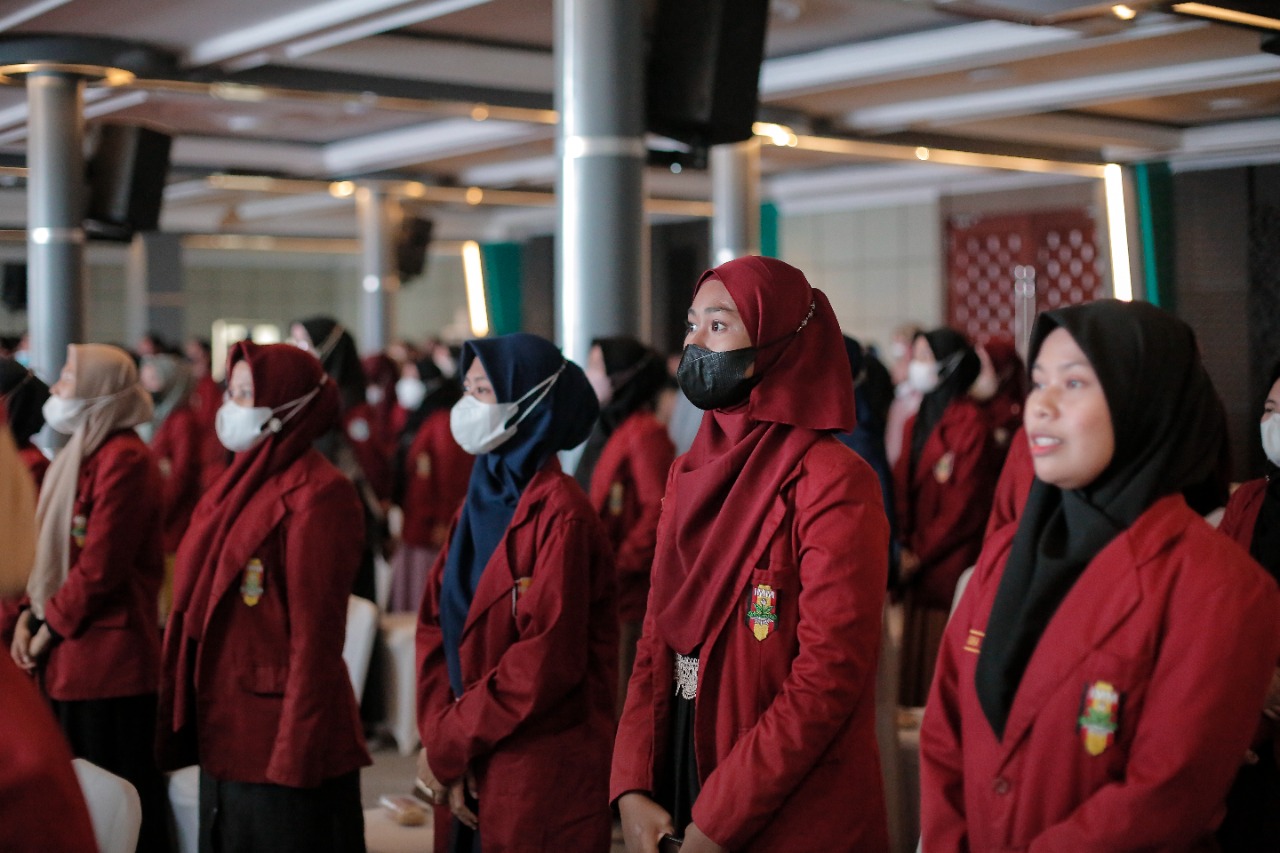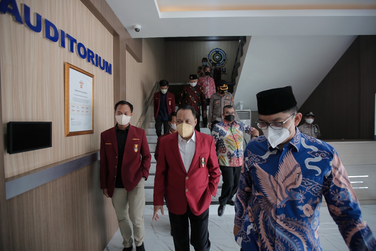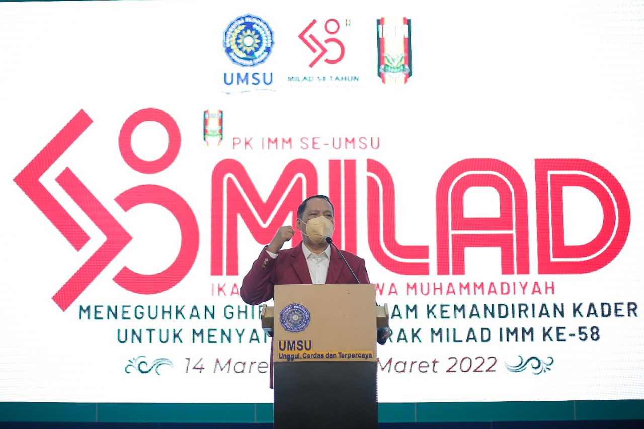 Rektor UMSU Prof. Agussani, MAP yang menggenakan jas merah kebanggan IMM, turut hadir memberikan apresiasi dan ucapan selamat.