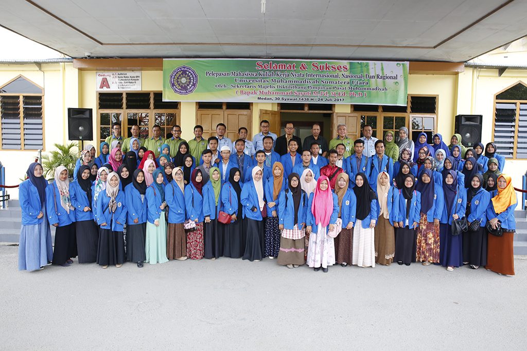 Acara pelepasan dilakukan oleh Sekertaris Majelis Dikti Litbang Pimpinan Pusat (PP) Muhammadiyah, Muhammad Sayuti MPd Med PhD di halaman kampus UMSU, Jalan Mukhtar Basri, Medan, Senin (24/7). Dari sebanyak 81 mahasiswa yang mengikuti KKN, 42 diantaranya ke Krabi, Thailand dan 5 mahasiswa ke Palembang, Sumsel serta 34 mahasiswa ke Langkat.