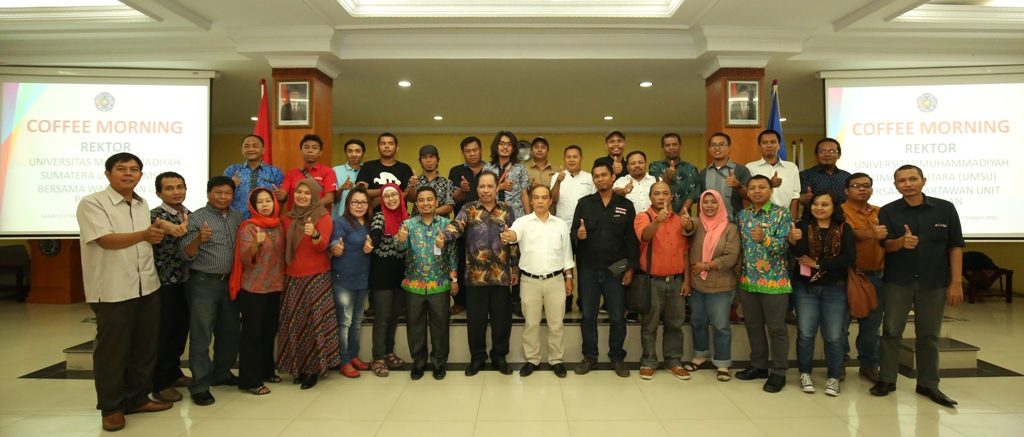 Sebelumnya, pada kesempatan Coffee Morning, Kabag Humas UMSU Ribut Priadi, M.I.Kom mengatakan Coffee Morning ini diadakan untuk membangun kebersamaan dengan para wartawan untuk mewujudkan Visi UMSU. Universitas ini tidak lagi berjalan tetapi sudah berlari untuk meraih visi tersebut. Visi besar membutuhkan tenaga yang besar pula yang harus melibatkan peran wartawan yang selama ini menjadi mitra Humas. Coffee morning ini menjadi sejarah di UMSU karena mengundang hampir 40 wartawan unit pendidikan