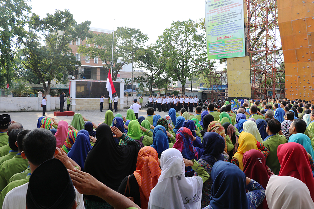 Upacara yang dimulai pukul 08.00 itu berjalan khidmat dihadiri Wakil Rektor I Dr Muhammad Arifin Gultom, Wakil Rektor II Akrim, MPd, Wakil Rektor III Rudianto, M.Si, Direktur Pascasarjana Prof Dr Ediwarman, Sekretaris Rektor Gunawan, M.Th, pimpinan fakultas, pimpinan prodi, pimpinan lembaga, para dosen serta staf biro administrasi.