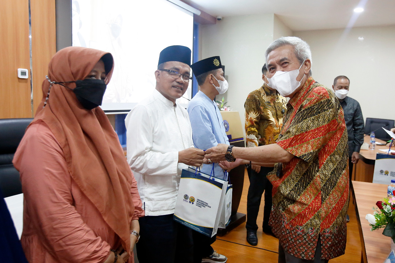 Rektor UMSU Prof. Dr. Agussani M.AP melepas 11 orang jamaah calon haji asal UMSU untuk berangkat menunaikan ibadah haji. 11 orang dosen dan tendik yang berangkat itu terbang melalui beberapa KBIH yang ada di Medan. Pelepasan jamaah calon itu berlangsung, Jumat sore (10/6) di Kampus Utama UMSU, Jalan Muhtar Basri Medan.