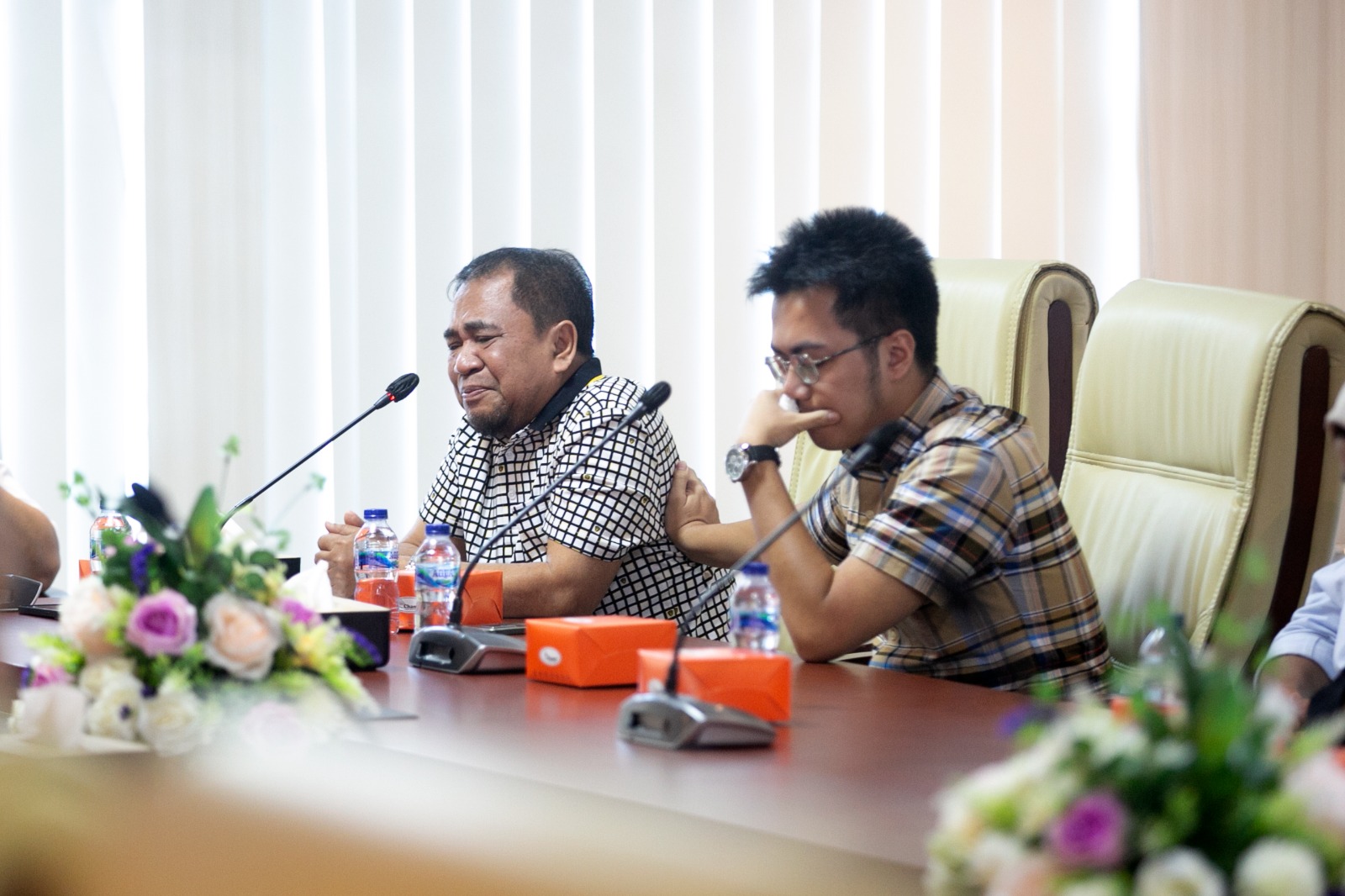 Berada di situasi yang penuh bangga dan haru, pelupuk mata Rektor UMSU ikut basah mendengar pesan Ayah Bayu.