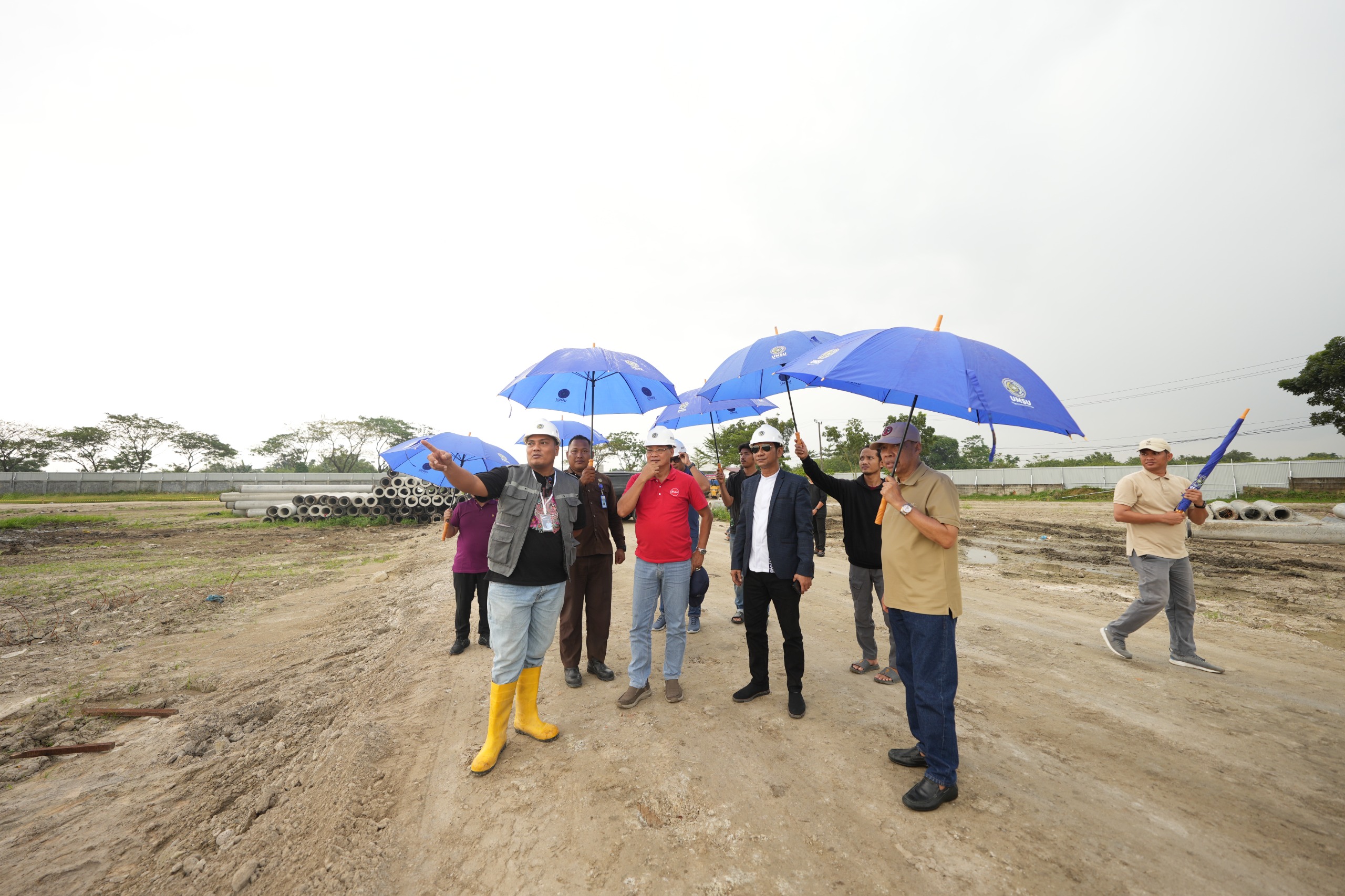 Rektor Universitas Muhammadiyah Yogyakarta (UMY), Prof. Dr. Achmad Nurmandi, M.Sc., bersama Ketua Bidang Hubungan Antar Lembaga dan Layanan Informasi (HLLI) Komisi Yudisial Republik Indonesia (KY RI), Prof. Dr. Mukti Fajar Nur Dewata, S.H., M.Hum., meninjau progres pembangunan kampus terpadu Universitas Muhammadiyah Sumateea Utara yang akan digunakan sebagai arena Muktamar 49 Muhammadiyah dan Aisyiah 2027 di Desa Saintis Percut Sei Tuan, Kabupaten Deli Serdang, pada Minggu (9/2).
