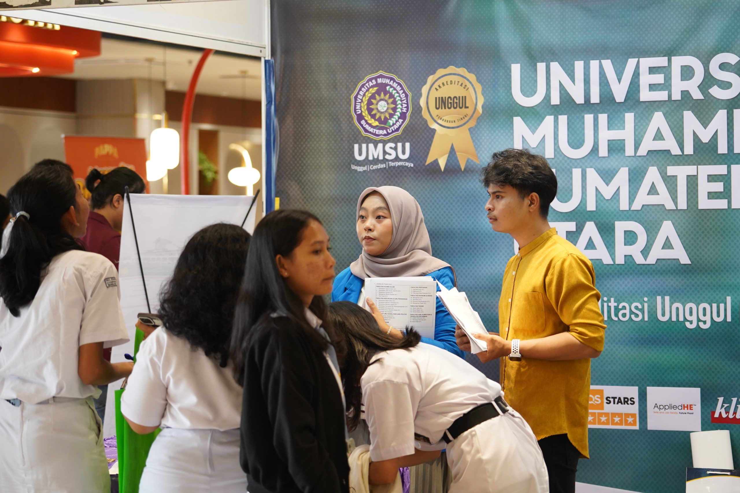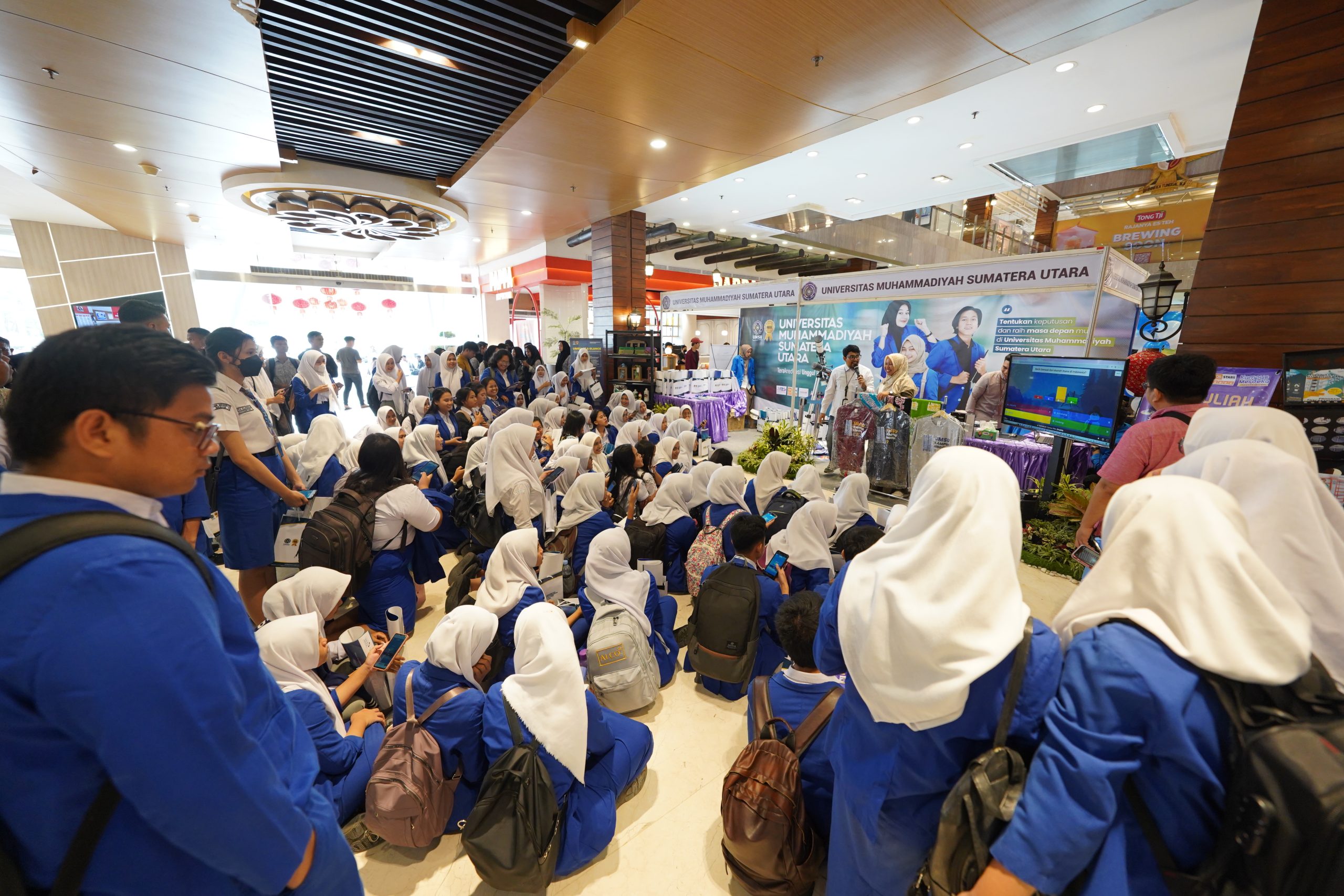 Sebanyak 3000 pelajar SMA/SMK antusias kunjungi stand Universitas Muhammadiyah Sumatera Utara (UMSU) pada pameran pendidikan tinggi se-Sumatera Utara yang digelar di lantai 1 Mall Ringroad Citywalks Medan, Selasa-Kamis (20-22/2).