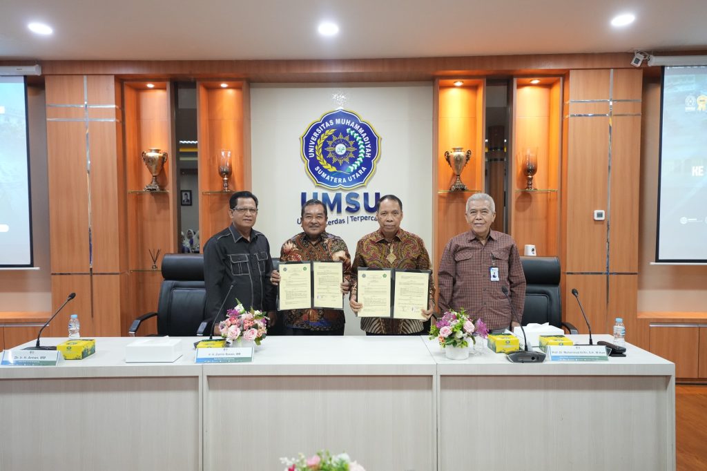 Penandatanganan MoU dilakukan langsung oleh Rektor UMSU Prof. Dr. Agussani, MAP dan Wakil Ketua I STIE Bankinang Dr. Ir. H. Azmhir Basem, M.M, disaksikan oleh Wakil Rektor I UMSU Prof. Dr. Arifin Gultom, M.Hum, Wakil Ketua III STIE Bankinang Dr. Ir. H. Arman, M.M, serta para dekan fakultas se-UMSU.
