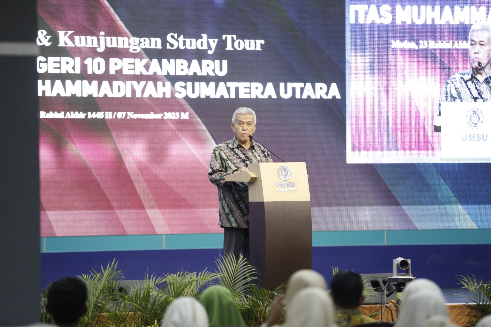 Sebelumnya Rektor UMSU, Prof. Dr. Agussani, MAP melalui Wakil Rektor I, Prof. Dr. Muhammad Arifin, SH, M.Hum menjelaskan, UMSU merupakan kampus terakreditasi unggul banyak menerima mahasiswa asal Riau, khususnya Pekanbaru. Ada 900 lebih mahasiswa dari berbagai daerah di Provinsi Riau yang menimba ilmu di UMSU.