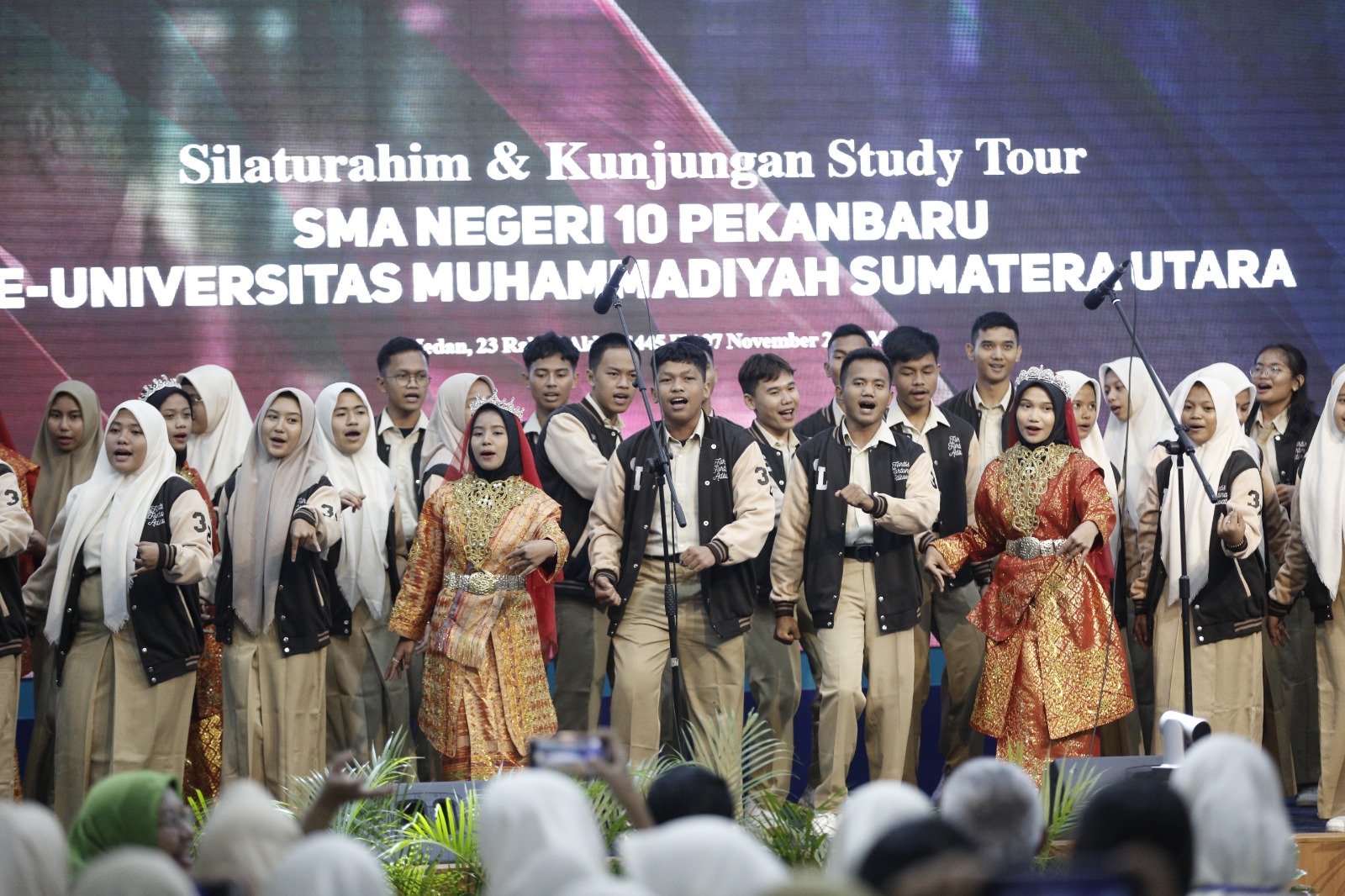 Sebanyak 300 siswa kelas XII SMA Negeri 10 Pekanbaru melakukan kunjungan studi ke kampus Universitas Muhammadiyah Sumatera Utara di Jalan Kapten M. Basri, Medan, Selasa (7/11).