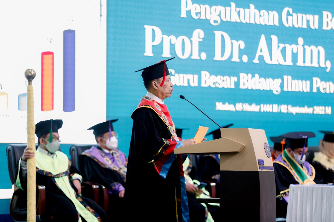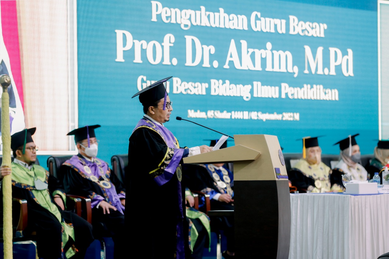 Prof.Dr. Akrim.M.Pd dalam pidato pengukuhan mengangkat judul