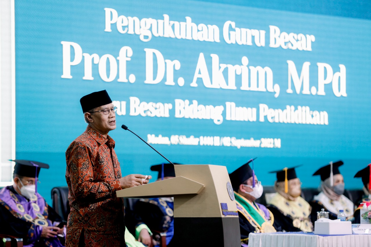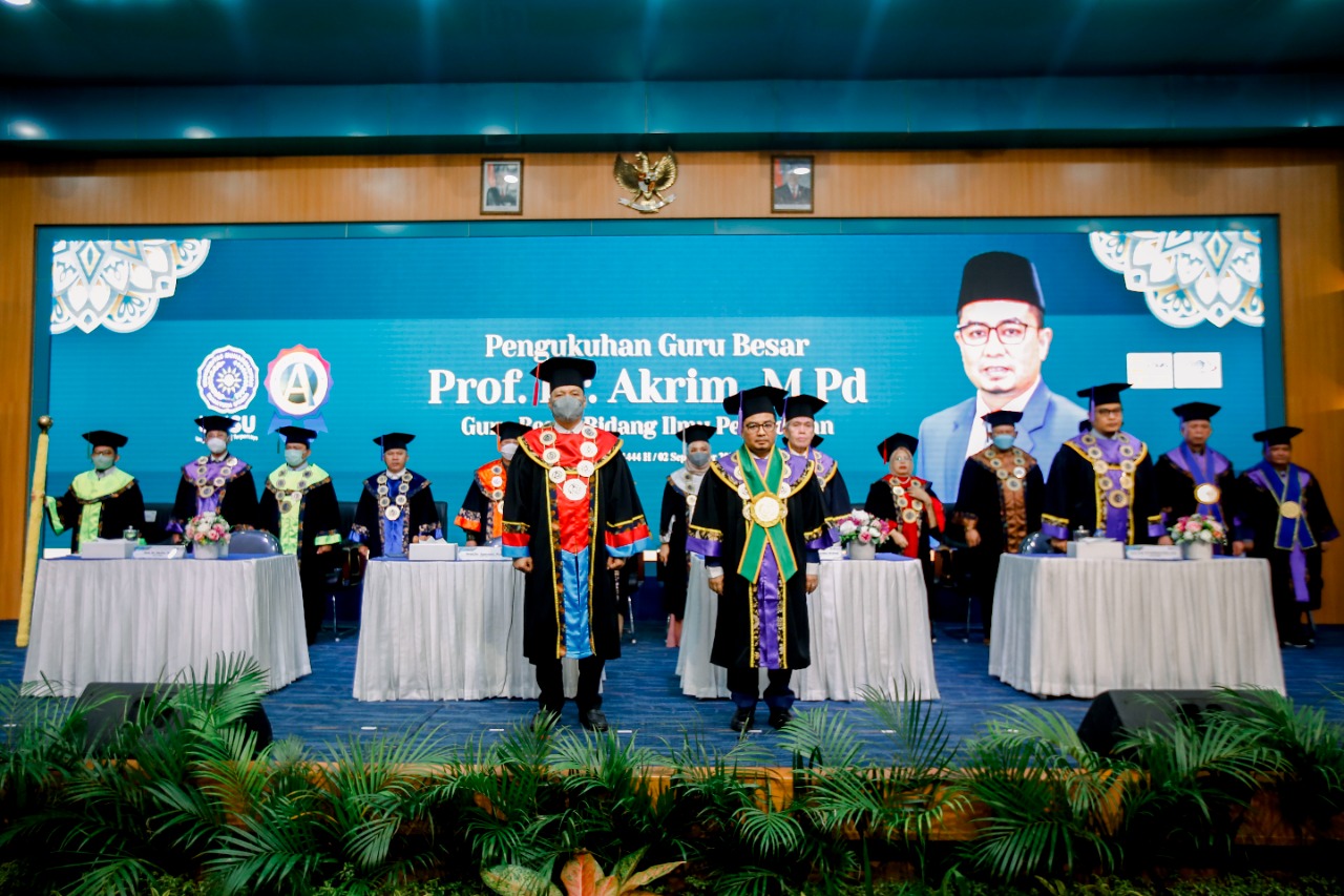 Wakil Rektor II Universitas Muhammadiyah Sumatera Utara, Prof.Dr. Akrim, M.Pd dikukuhkan sebagai guru besar bidang Ilmu pendidikan melalui rapat senat yang digelar, Jumat (2/9) di auditorium Kampus, Jl Kapt. Mukhtar Basri, Medan.