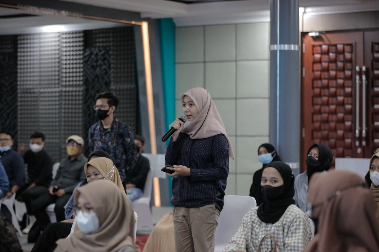 Sosialisasi yang dihadiri mahasiswa dari lintas fakultas ini diakhiri dengan diskusi dan foto bersama. (Pny)