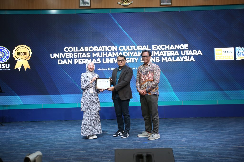 Universitas Muhamamdiyah Sumatera Utara (UMSU) dan Persatuan Mahasiswa Anak Negeri University Sains Malaysia (Permas USM) menggelar pagelaran bertukar kultur serta budaya melalui program bertajuk ‘Collaboration Cultural Exchange”. Kegiatan yang diisi dengan pertunjukan seni tari dan budaya tradisional masing-masing negara digelar, Jum’at (31/5) di Auditorium Kampus UMSU Jalan Muchtar Basri No.3 Medan.