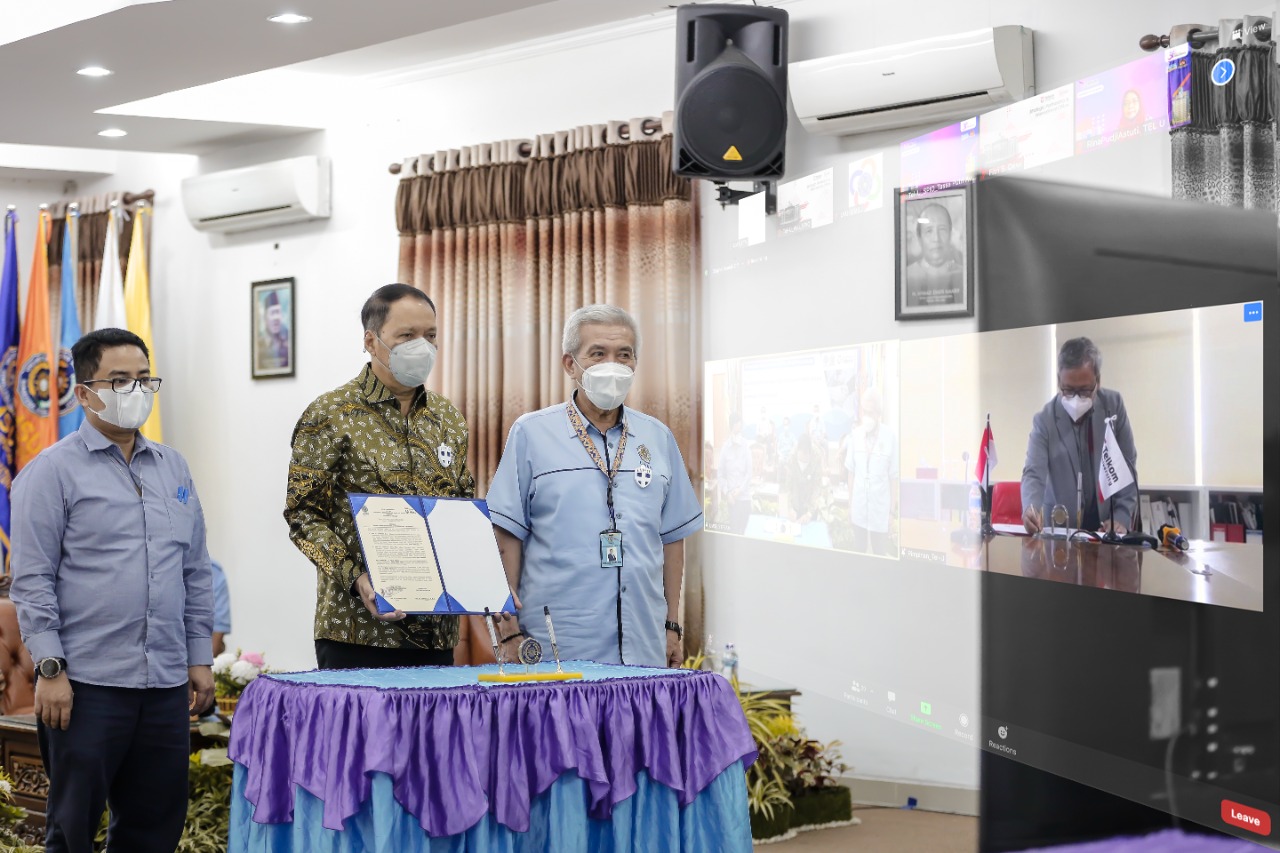 Penandatanganan naskah MoU yang dilaksanakan secara virtual dilakukan langsung oleh Rektor UMSU, Prof. Dr. Agussani, MAP dan Rektor Telkom University, Prof. Dr. Adiwijaya, S.Si, MSi, Senin (13/9). Acara turut dihadiri para wakil rektor dan pimpinan lembaga dan kepala biro masing-masing universitas.